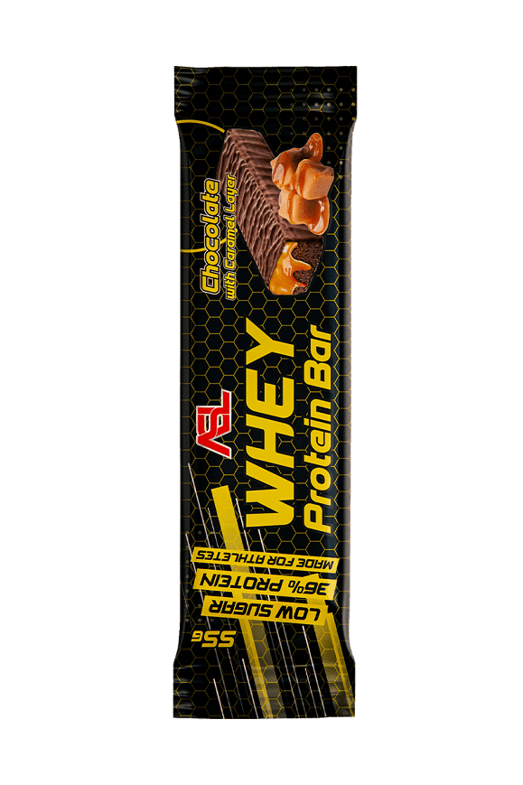 INTRODUCING OUR WHEY PROTEIN BAR, A DELICIOUS FUSION OF TASTE AND PERFORMANCE, SPECIALLY CRAFTED FOR ATHLETES. WITH A RICH CHOCOLATE CORE AND A LUSCIOUS CARAMEL LAYER, IT'S THE ULTIMATE PRODUCT THAT FUELS YOUR BODY.
